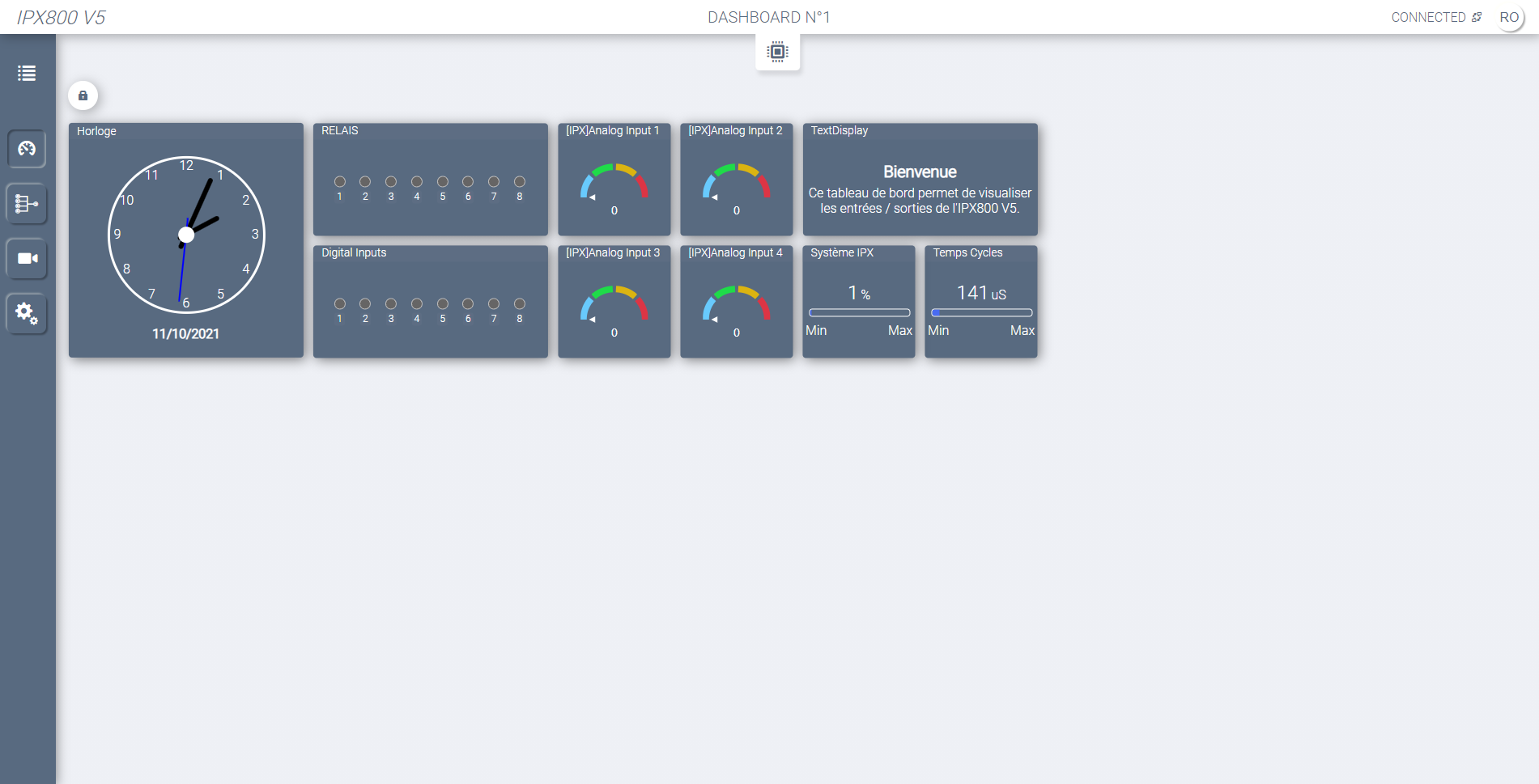 Ce dashboard vous permet de piloter toutes les Entrées/Sorties de votre IPX.