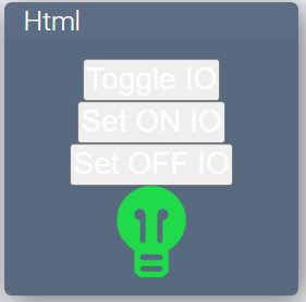 Ce Widget HTML est composé de trois boutons permettant de piloter le relais 1 de l'IPX, ainsi que d'un icône représentant l'état du relais 1 de l'IPX.
